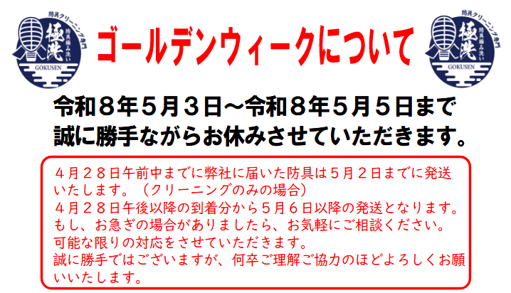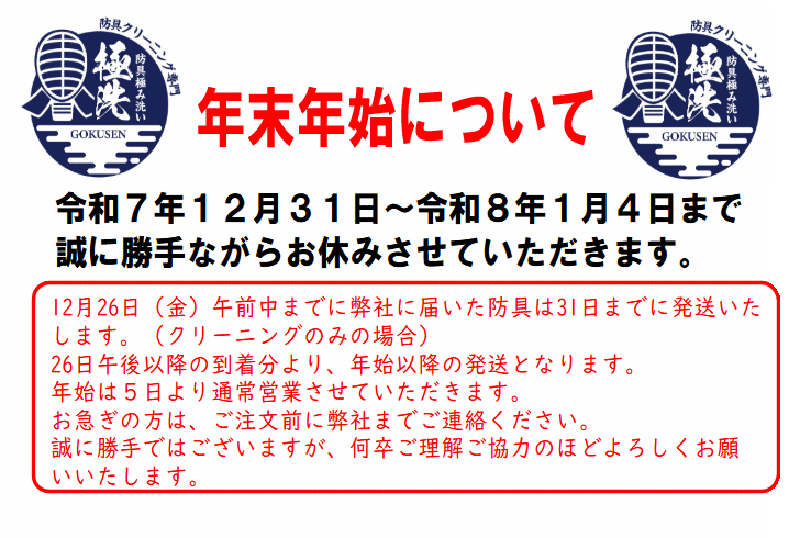 ※防具の損傷が激しい場合クリーニングをお断りさせていただく場合があります。